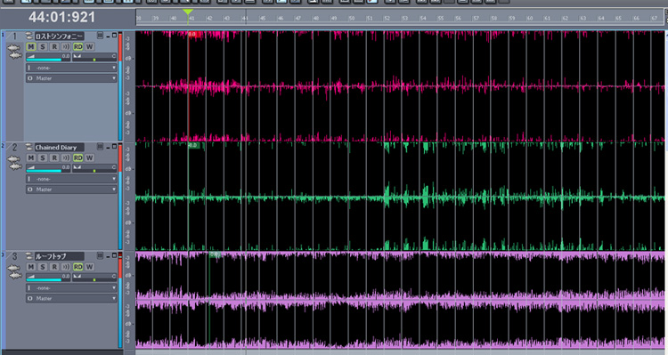 前陣子知道Loudness War(link)這個名詞之後,突然想到之前新谷良子有首混音被鞭很大的ロストシンフォニー。不看不知道(過去都純粹用聽覺去分辨而已)、看了嚇一跳,果然是有很大的問題。圖中的三首歌由上到下分別是ロストシンフォニー、Chained Diary、ルーフトップ,下面兩首是我很喜歡的歌,Chained Diary比較早,是Pretty Good!(link)時期的歌;ルーフトップ則是Wonderful World(link)時期。